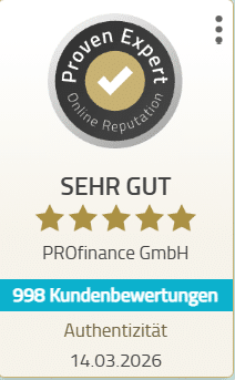 Neben Konditionen und Vertragsbedingungen spielen auch Kundenbewertungen eine Rolle. Auf der Bewertungsplattform ProvenExpert erreicht PROfinance eine durchschnittliche Bewertung von rund 4,8 von 5 Sternen.